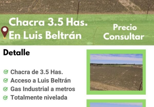 CHACRA EN VENTA (5 HECTÀREAS) «LUIS BELTRÀN,RIO NEGRO,ARGENTINA.